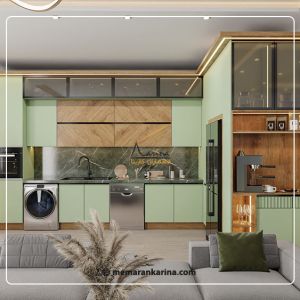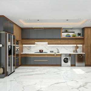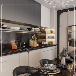 - نوع هایگلاس این کابینت ها نور رو منعکس میکنن که باعث پرنورتر دیده شدن آشپزخونه میشن